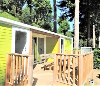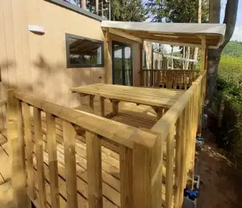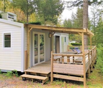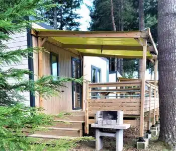 Nos chalets BELVÉDÈRE : Le chant des oiseaux et le murmure du vent dans les feuilles composent une symphonie apaisante, tandis que l’air vivifiant, chargé de l’odeur des résineux et des fleurs sauvages, invite à la détente. c’est un véritable havre de paix, propice à la contemplation et à l’évasion. Entouré de sapins, se dresse un chalet en bois chaleureux et moderne. Construit en barde de bois de cèdre massif, il se font parfaitement dans la nature environnante. Sa façade principale est agrémentée d’un large porche couvert, où une table en bois et quelques fauteuils invitent à profiter du cadre idyllique, parfait pour des soirées sous les étoiles, bercées par le chant des oiseaux et le murmure du vent dans les branches.
